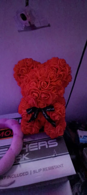 Choose an eternal rose bear that never wilts. This rose bear keeps its shape and color, so anniversary and valentines gifts stay beautiful on display without watering or upkeep.