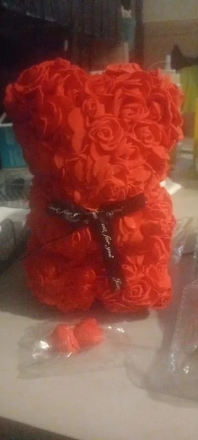 Give lasting romance with a hand-crafted rose bear that keeps flowers perfect forever and brightens her day